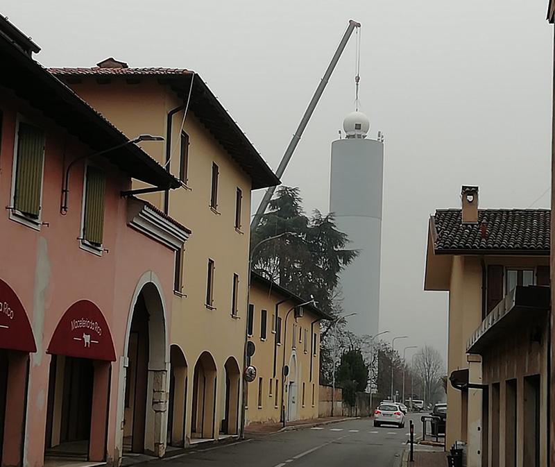 To resolve this problem, ARPA Lombardia (the Regional Agency for the Protection of the Environment of Lombardia Region) procured two Vaisala X-band Weather Radar WRS400 through a public tender. Vaisala, in cooperation with their Italian representative and certified service partner Eurelettronica Icas, installed the first WRS400 in December 2021. ARPA selected the top of an existing water tower in the municipality of Flero as one installation site. The location is central to the urban areas and river basin networks, which are most likely to see dangerous flooding conditions.