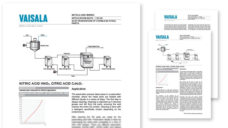 Vaisala PolarisTM process refractometer is a safe, reliable and quick method to monitor that the passivation is performed at all times within the recipe specifications. The in-line refractometer is designed specifically for measurement of chemically aggressive solutions, ensuring complete compatibility with the acid and long-term performance.