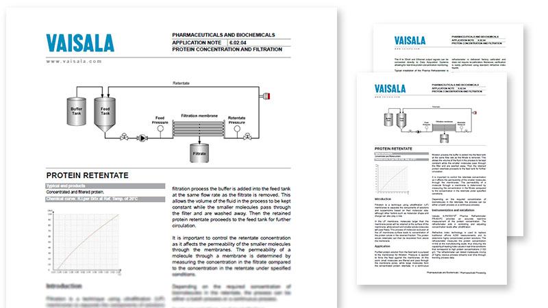 The application note explains in more detail the benefits of using refractive index in biopharmaceuticals manufacturing and why refractometer is ideal for protein concentration and filtration. The note also includes recommended installation points for best performance.