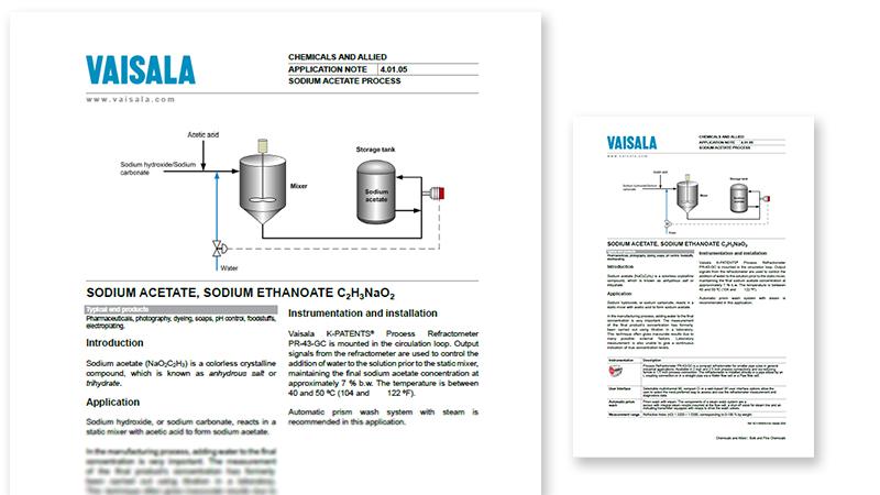 Inline-Refraktometersignale werden genutzt, um die Wasserzugabe so zu steuern, dass die Endkonzentration von Natriumacetat bei ungefähr 7 % pro Gewicht liegt.