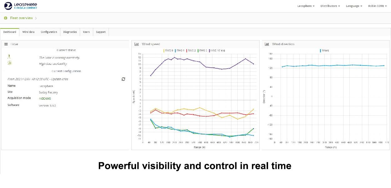 Thanks to this consistent digital environment and user-friendly interface, wind industry players have access to many useful features, including but not limited to: status reporting and geographical location of your system(s), remote control (such as reboot or wiper management) and system configuration to make sure your lidar is collecting wind data at altitudes that you need. Real-time monitoring, customizable early warning alarms, data storage and export are also available, providing business-critical insights into your measurement campaign.
