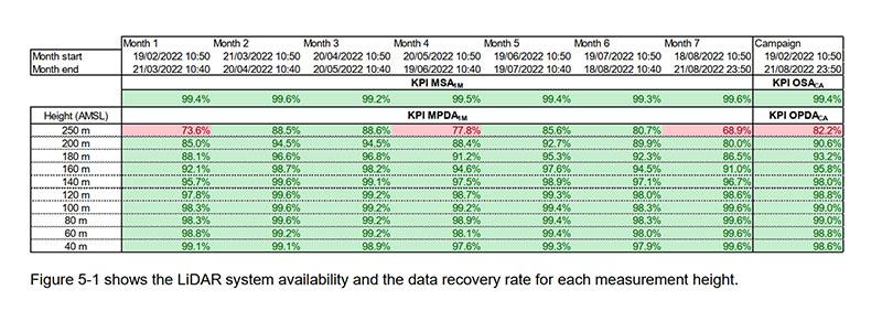 Vaisala answers: Data availability in the offshore environment is generally high, as there is always a good level of aerosol presence in the salty, marine conditions. That said, lidar data availability can vary from site to site, but all floating lidars (depending on their stage of maturity) have to achieve specific KPIs defined by Carbon Trust OWA. More information here.