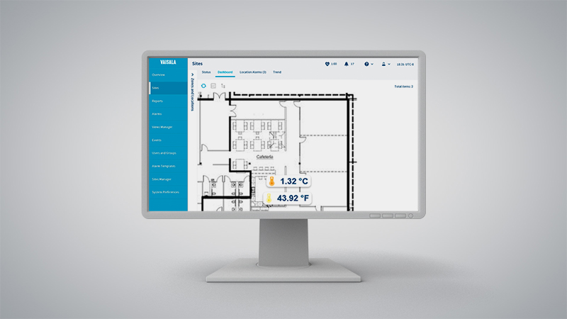 One feature of the viewLinc monitoring system that has been especially useful at IPS is the software’s dashboard. Dashboards allow a graphic overview of all environments monitored by viewLinc in the facility. Users upload an image file — photo or facility schematic — and add sensors to locations on the image to provide a visual representation of their monitored area. The dashboard interface includes features like color-based status (green, yellow and red) and the ability to click on a monitored location to get historical data and trends from that data logger.
