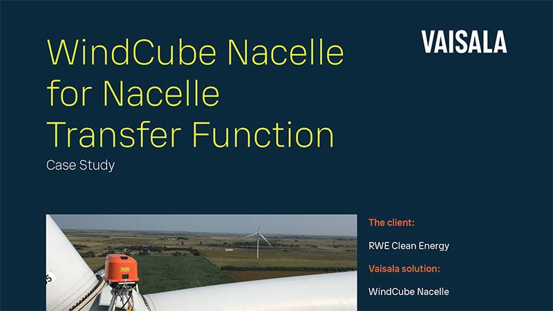 “RWE’s objective is to measure the wind speed accurately and make improvements based on data and value creation... WindCube Nacelle has proven to be a superb tool to accomplish our goals, and we are impressed with Vaisala’s support and service which helped us get up and running very quickly with great results.”