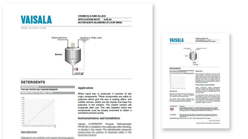 The Vaisala Polaris™ process refractometer measures continuously the percent of dissolved solids in the liquid wax product. The refractometer provides Ethernet and 4-20 mA output signals that can be used for automatic control of the blending operation.