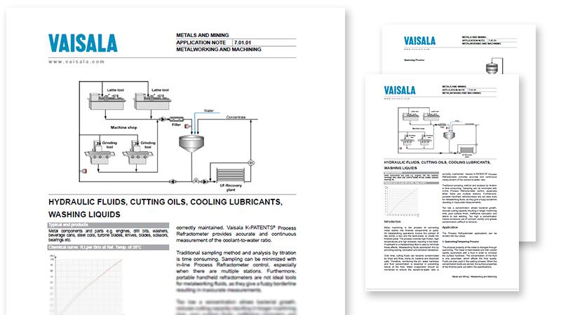 In-line Vaisala PolarisTM process refractometer provides accurate and continuous measurement of the coolant-to-water ratio. The in-line refractometer is used at the following stages of the metal machining process: