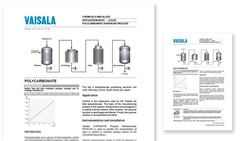 Vaisala Polaris™ process refractometer is used to monitor the concentration of resin in solvent to maintain precise control of the manufacturing process.