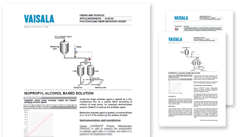 In-line Vaisala PolarisTM process refractometer is used to measure the concentration of the antistatic agent after it is diluted, and before it is applied to the polyethylene sheet.