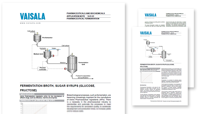 The application note is about fermentation applications and explains in detail the benefits of using refractive index in pharmaceutical manufacturing. The note also includes recommended installation points for best performance.