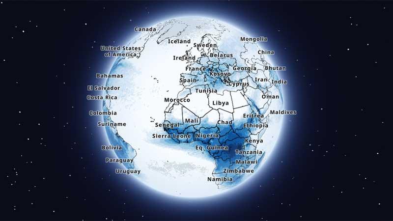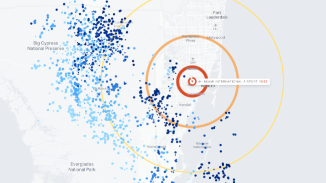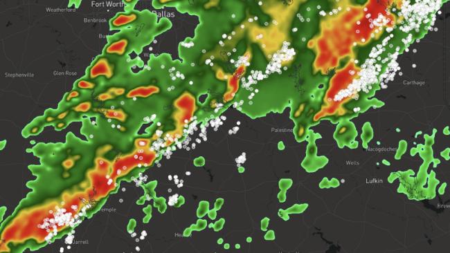 Map showing real-time lightning data from the Xweather API