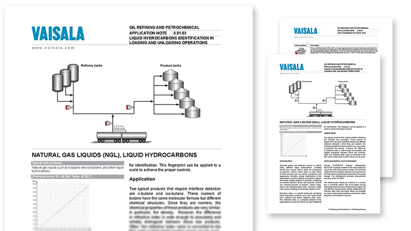 Vaisala PolarisTM Process refractometer is typically installed in the main supply line and at the inlet of the product storage to provide proper identification of the hydrocarbons and fluid product interfaces and to make sure the right hydrocarbon product is delivered to the correct storage. Combining interface detection devices with automatic controls can minimize transmix of products, reduce waste, reduce the filling/unloading times, decrease safety risks, reduce sampling, and minimize operator errors.