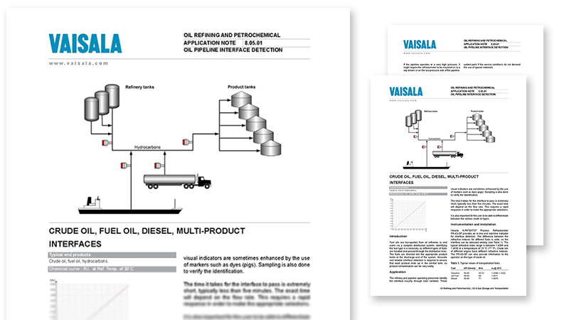 Vaisala K-PATENTSĀ® Process refractometer provides in-line, real-time interface detection to ensure that each product ends up in the correct tank, and to eliminate costly trans-mix of products.