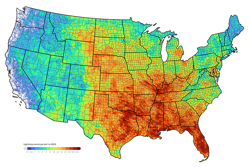 - Vaisala Xweather Annual Lightning Report 2023 U.S. lightning density