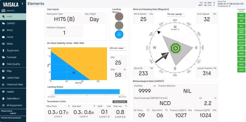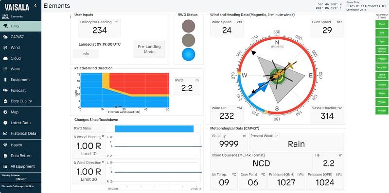 On 5th May 2025, Vaisala announced its Vaisala Elements Helideck Monitoring Software, the first and only software to seamlessly integrate high-resolution vertical wind profiling from the WindCube® lidar suite, advanced lightning detection, and both graphical and data forecasts from Vaisala Xweather.