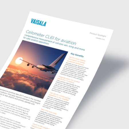 CL61 is unlike any other ceilometer, and it is already providing previously unattainable benefits to aviation. Contact us now to learn more how CL61 can dramatically improve your operations.