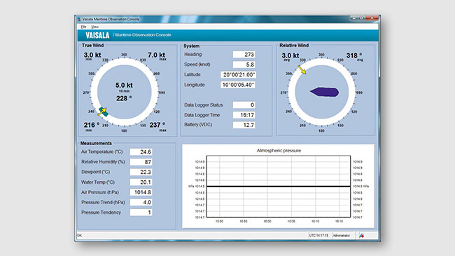 Vaisala’s Maritime Observation Console MCC401 is PC software designed for use with our Maritime Observation System. It allows you to display the real-time meteorological measurement data needed to inform ships and offshore operations about the current weather conditions, and to archive and edit the data. Improve helideck safety by monitoring weather conditions and getting data in the most useful format.