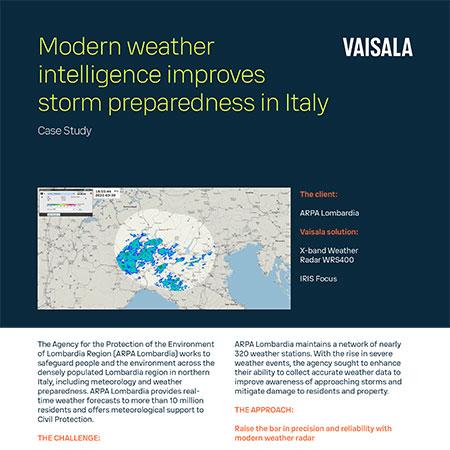 Vaisala’s WRS400 delivers detailed storm system data that includes the exact path and precipitation levels, precipitation type and ground-level amounts, and ground-level disturbances such as microbursts and tornadoes.
