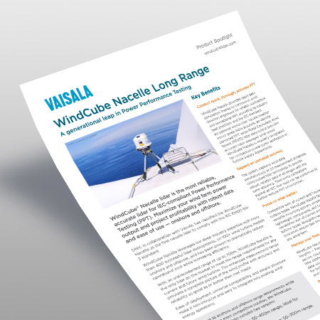 Power Performance Testing (PPT) has always been a time-consuming and expensive process. With an unprecedented range of up to 700 meters, WindCube® Nacelle is the only lidar on the market to reach such distances — both onshore and offshore — and meet the PPT requirements for any current and future wind turbine, with accuracy and reliability as good as or better than met masts.
