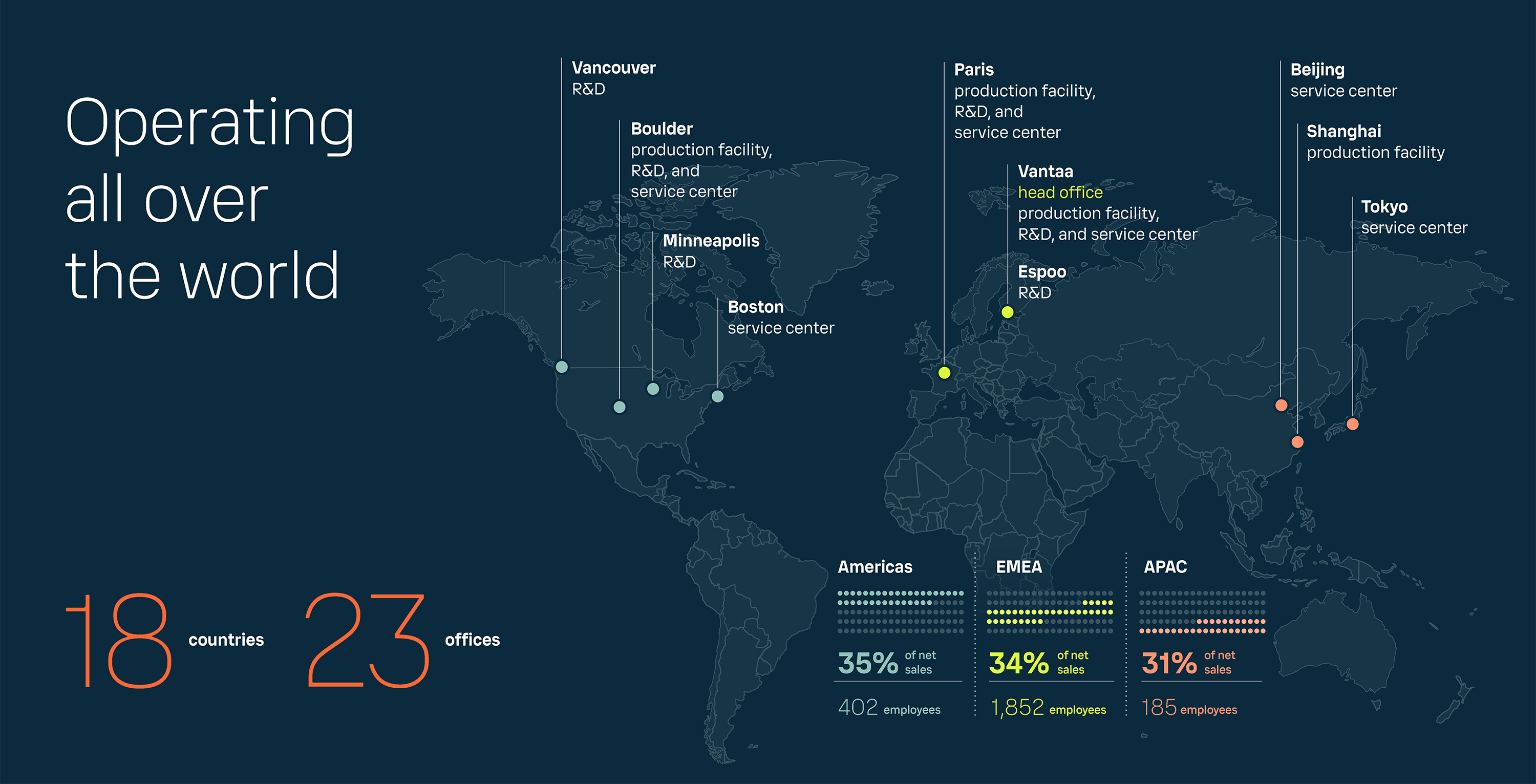 The map below shows Vaisala’s current production and R&D sites and service centers.