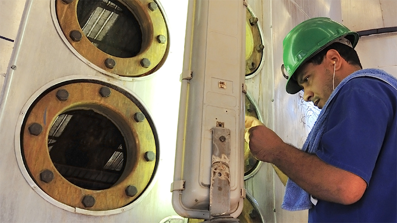 el refractómetro de proceso Vaisala K-PATENTS® mide los grados Brix del azúcar líquido en la torre de extracción y la concentración de azúcar...
