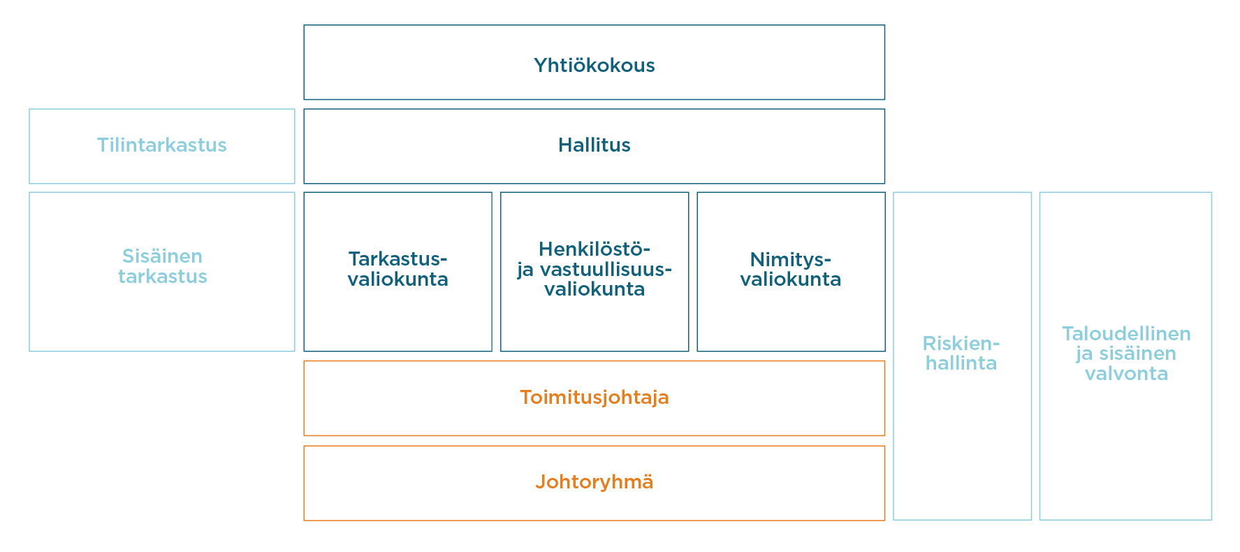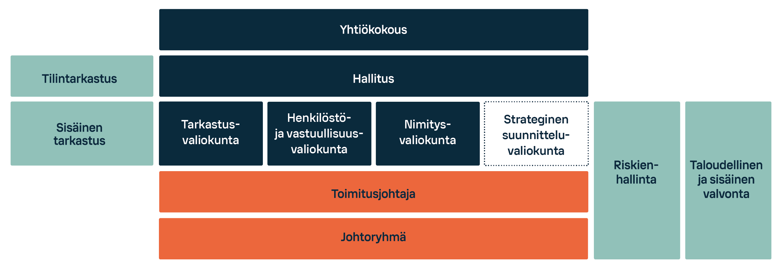 Hallinnointimalli Vaisalan hallinnosta vastaavat yhtiökokous, hallitus ja toimitusjohtaja apunaan johtoryhmä.