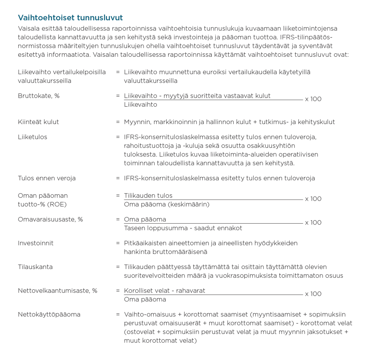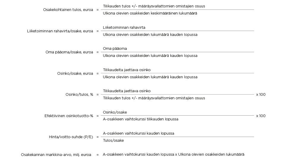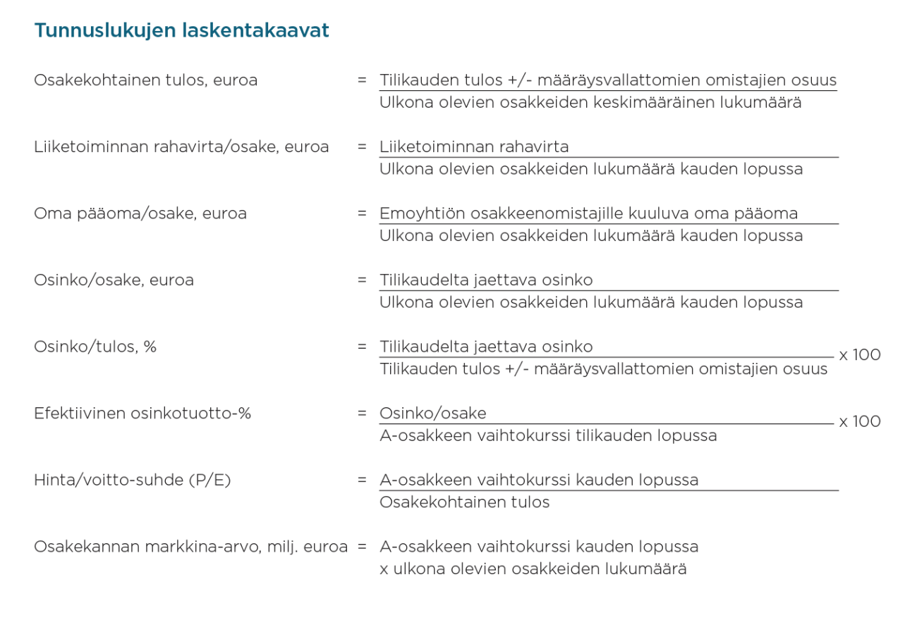 - Avainlukujen laskentakaavat