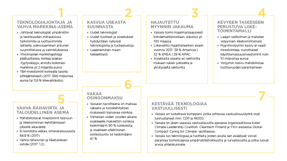 Olemme vakaa, vastuullinen ja globaalisti toimiva suomalainen yritys. Alamme teknologiajohtajana tähtäämme pitkäjänteiseen kasvuun sekä globaalisti johtavaan asemaan sään, ympäristön ja teollisuuden mittauksissa vastaamalla erilaisiin megatrendeihin ja panostamalla tutkimukseen ja kehitykseen.