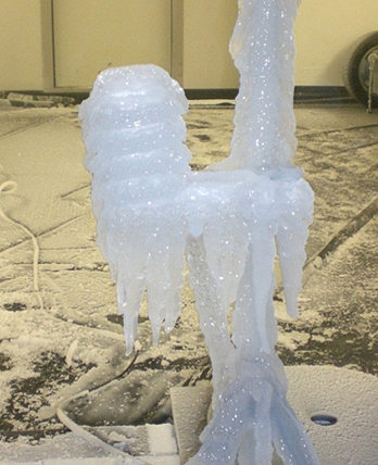 Il ne fait pas toujours beau. Parfois, il pleut ou neige, sans oublier les autres facteurs météorologiques à prendre en compte. Par exemple, quand il pleut, l'eau entrera en contact avec le capteur, ce qui risque de causer des dérives ou une humidité trop élevées. Si l'air circule correctement, l'eau s'évaporera et les mesures seront fiables. Mais si vous avez besoin de résultats exacts à 100 pourcent dans des applications critiques, vous pouvez également envisager une configuration qui inclut un réchauffement de la sonde. Ainsi, le capteur sera toujours sec, mais nécessitera aussi une mesure séparée de la température car le capteur réchauffé ne mesurera pas la température ambiante correctement, uniquement l'humidité. Outre la pluie, il peut y avoir du vent. Le capteur doit donc pouvoir résister au givre et aux vents forts. La figure 3 présente un capteur extérieur avec un une grande formation de glace suite à un test de pluie glacée – je suis particulièrement fier de déclarer que les capteurs Vaisala maîtrisent aisément ce genre de traitement.