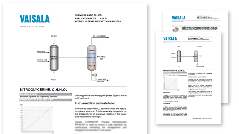Le réfractomètre de procédé Vaisala K-PATENTS® est utilisé pour assurer un fonctionnement sûr en surveillant en permanence la concentration de nitroglycérine et de nitroglycol dans les déchets.