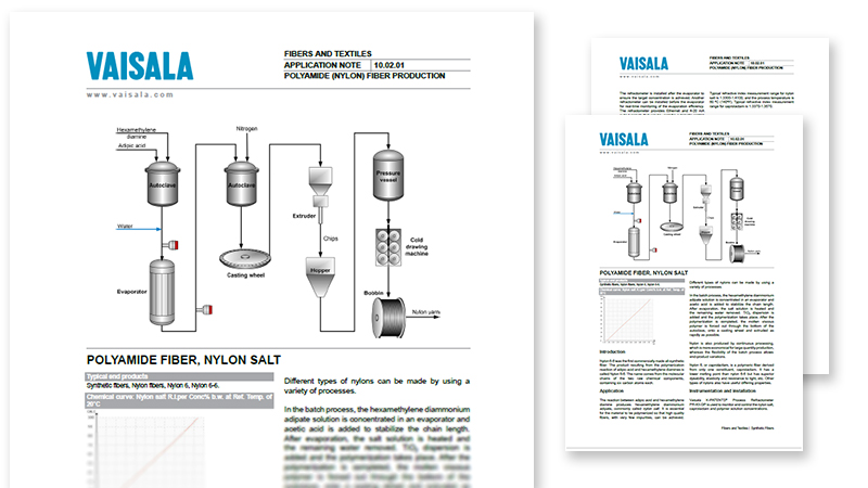 Le réfractomètre de procédé en ligne Vaisala K-PATENTS® est utilisé pour surveiller et contrôler les concentrations de solution de sel de Nylon, de caprolactame et de polymère.
