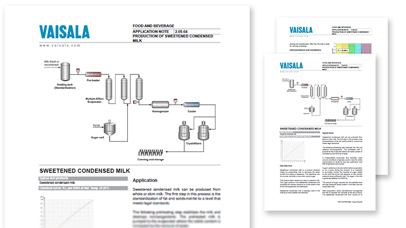 Le lait concentré sucré est un moyen de conserver le lait. C'est également un ingrédient très utilisé dans la production de confiseries et de bonbons. Produit à partir de lait entier ou écrémé, le lait concentré sucré a généralement une teneur en sucre de 62 à 65 %. Il est extrêmement important de contrôler en ligne le bon dosage du sucre car il affecte la durée de stockage, les qualités gustatives et la rentabilité de la production.