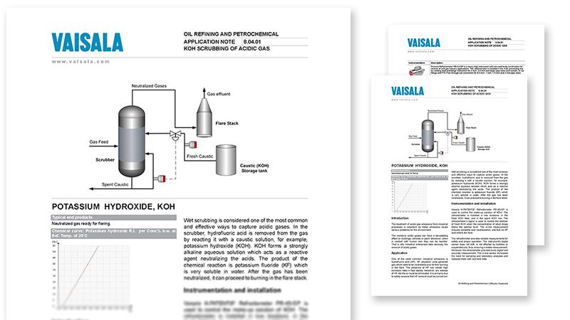 Le réfractomètre de procédé Vaisala K-PATENTS® est utilisé pour la mesure en ligne continue de la concentration de KOH à deux emplacements :