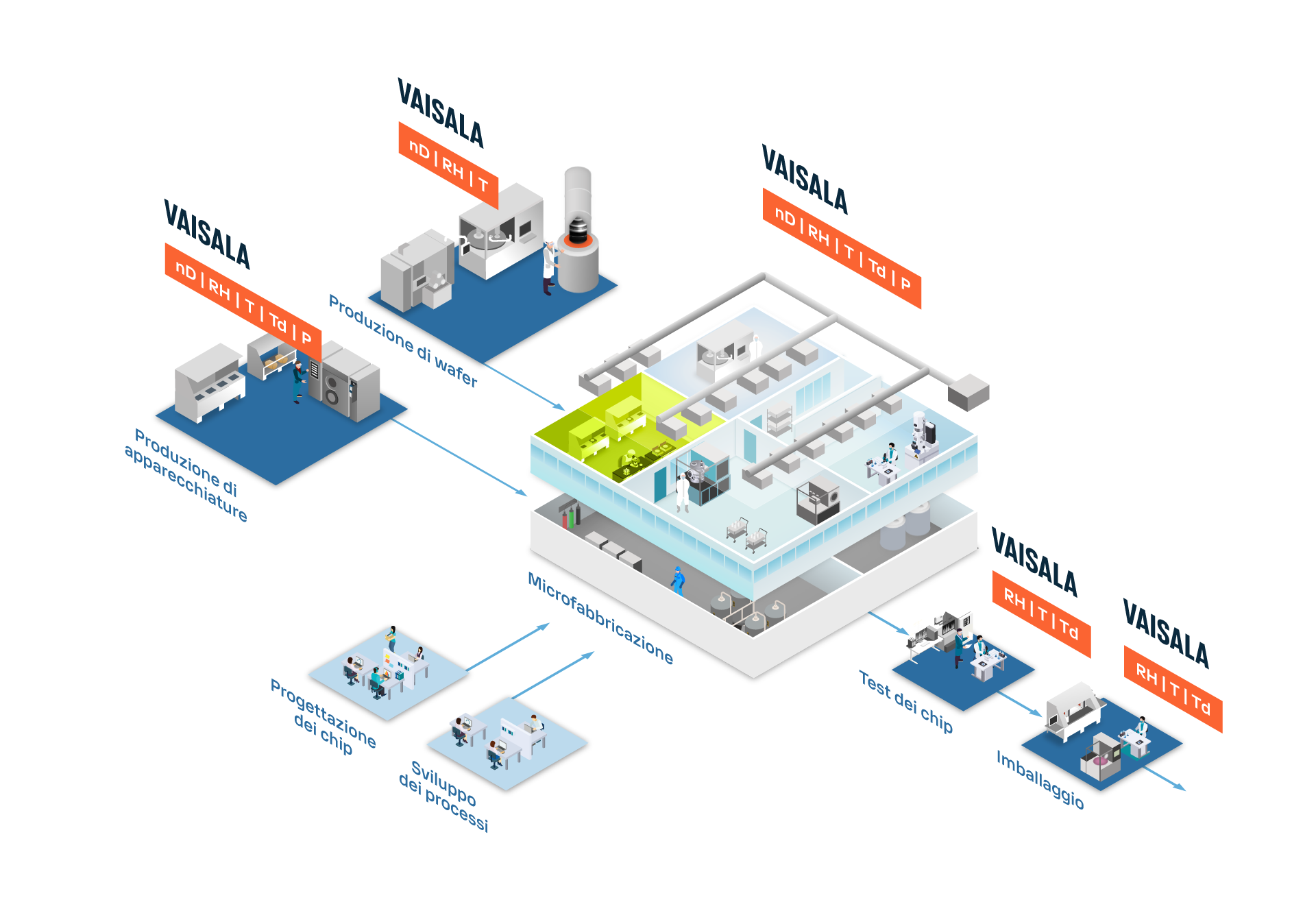 L'offerta completa di Vaisala, dotata dei parametri giusti, garantisce misurazioni stabili nella produzione di semiconduttori.