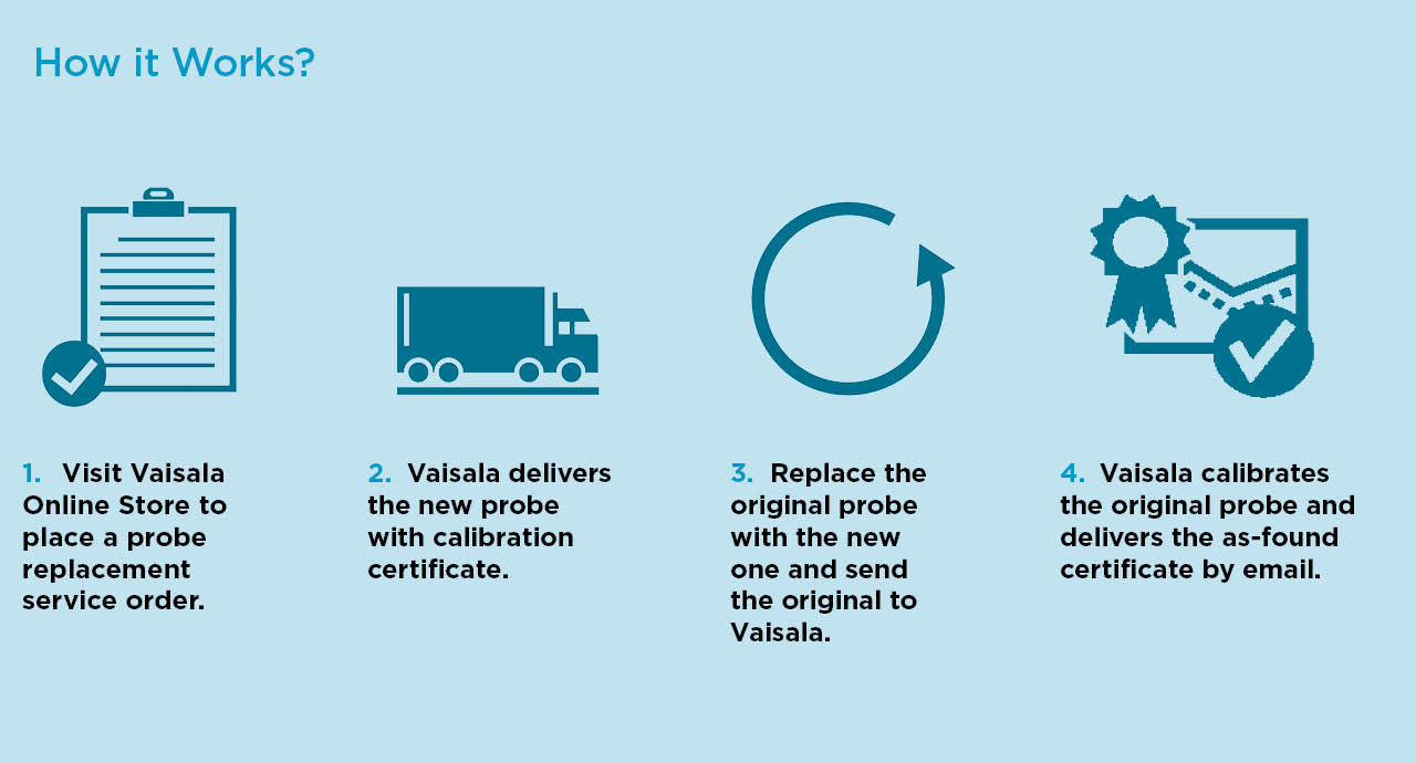 The service fulfills regular calibration needs without downtime or data losses. Simply replace the probe and continue monitoring.