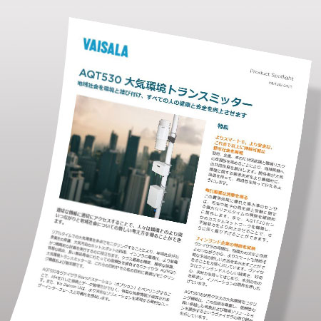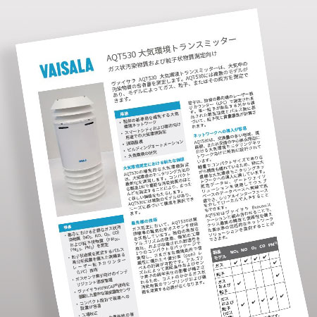 クラス最高の精度、簡単な設置、容易な統合、長い製品寿命にわたっての信頼性を提供するヴァイサラ AQT530 大気環境トランスミッター は、これらの目的やその他の目的に最適なモニタリング機器および測定器です。
