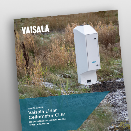 ヴァイサラ CL61 ライダーシーロメータは、通常のシーロメータによる雲底などの計測に加え、新しい偏光解消計測機能を組み合わせた、この種として初の技術が搭載されています。偏光解消計測により、粒子や降水タイプを正確に判別することができ、状況認識と予測を劇的に改善することができます。