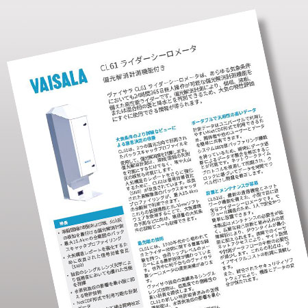 また、CL61は統合が容易で、費用対効果が高く、世界的に信頼されているヴァイサラのセンサ技術とサービスによって支えられています。これらすべてにより、CL61はシーロメータの中でも他に類を見ないシーロメータであり、いくつかの主要なアプリケーションで意思決定と安全性を向上させるための優れた、費用対効果の高いツールとなっています。