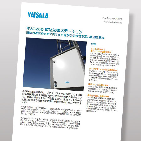「RWS200 道路気象ステーション」のより詳細な情報や資料は、英語版の製品ページでご確認いただけます。本ページ右上にある言語選択で「English」を選択いただくと、英語版の製品ページに移動します。
