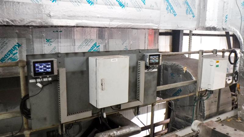 Os instrumentos de medição Vaisala também podem ser encontrados nas máquinas de fundição da Futamura UK, instaladas nos dutos do secador para medir temperatura e umidade. O medidor de umidade e temperatura Vaisala HUMICAP® série HMT330 foi projetado para fornecer medições altamente precisas em aplicações industriais exigentes. Esses transmissores controlam uma válvula que aumenta ou diminui a quantidade de vapor que entra nos secadores, permitindo manter a umidade no ponto de ajuste necessário para a secagem de cada tipo específico de filme. O teor de umidade é um fator significativo nas propriedades do filme final, portanto, um controle preciso é essencial para garantir a qualidade e reduzir o desperdício. Como a série HMT330 é um modelo mais antigo, a Futamura queria preparar sua instrumentação de medição para o futuro – então a empresa entrou em contato com a Vaisala para obter orientação.