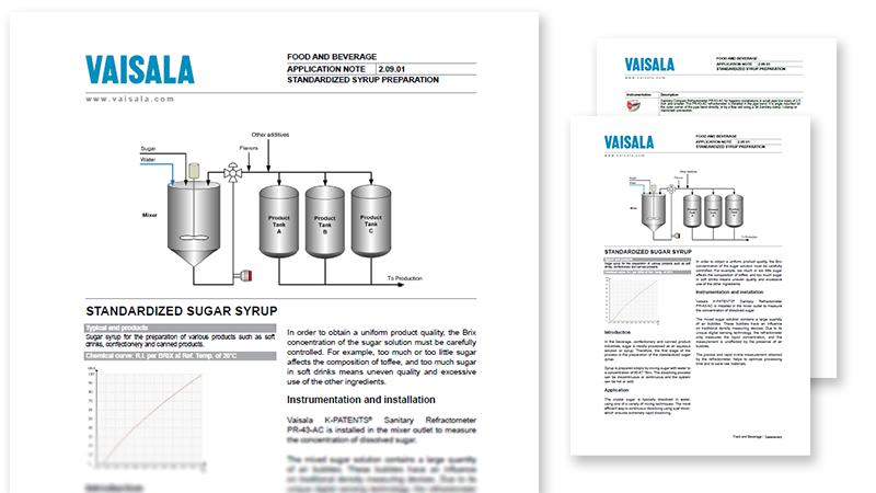 Faça download da nota de aplicação para saber como o refratômetro sanitário Vaisala K-PATENTS® mede com precisão e em tempo real a concentração de açúcar em Brix. A medição não é afetada pelas bolhas de ar devido à tecnologia de detecção digital exclusiva do refratômetro. A medição traz benefícios para o processo de preparação de xarope de açúcar como custo-benefício, tempos de processamento ideais e rigoroso controle de qualidade do produto final.
