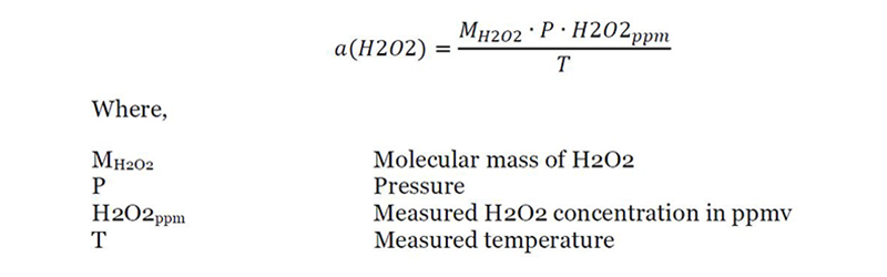 可使用以下公式将绝对 H2O2 mg/m3(毫克每立方米)转换为 mg/L(毫克每升):