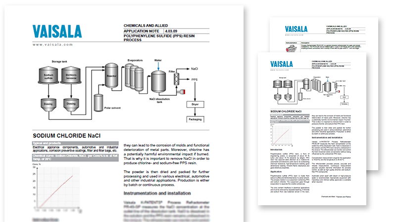 阅读应用说明,详细了解 PPS 化合物生产过程中的氯化钠测量。
