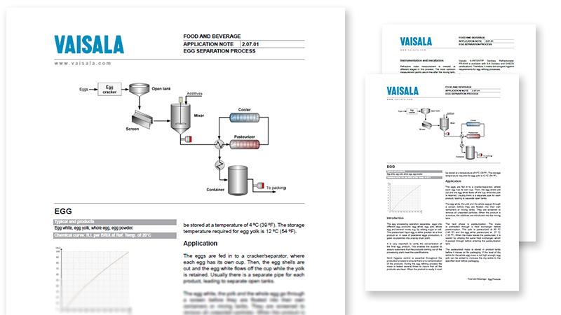 在鸡蛋加工过程中,维萨拉 K-PATENTS® 卫生型折光仪可测量蛋黄、蛋白和全蛋中的干固形物含量,以确保符合产品规格和规定。