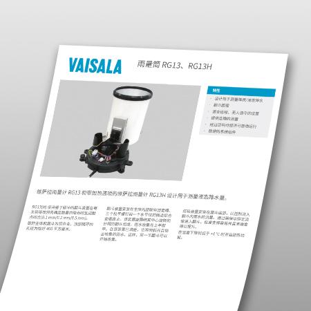 雨量筒RG13 雨量筒(带加热选项),设计用于测量偏远和无人值守地方的液态降水。 设计原理 坚固可靠 设计原理 维萨拉雨量筒RG13(和RG13H加热选项)是为测量远程和无人值守应用中的液态降水而设计的,甚至可以在恶劣的环境中运行。 自动倾倒机制在预定数量的降雨后触发,测量结果不断被转发,以便在不断的降雨中捕获准确的测量结果。 当温度下降到+4 °C 以下时,RG13H的加热元件会自动启动。 坚固可靠 RG13的主体和漏斗是由耐用的铝合金制成。 翻斗机构由围绕中心转动的一分为二的翻斗组成。雨水聚集在上半部分,当满了之后,它就会倾斜,排空收集的水,让水流入另一半翻斗。 虹吸装置确保进入翻斗内的流量恒定,以便于校准和精确的测量。 设计原理 设计原理 维萨拉雨量筒RG13(和RG13H加热选项)是为测量远程和无人值守应用中的液态降水而设计的,甚至可以在恶劣的环境中运行。 自动倾倒机制在预定数量的降雨后触发,测量结果不断被转发,以便在不断的降雨中捕获准确的测量结果。 当温度下降到+4 °C 以下时,RG13H的加热元件会自动启动。 坚固可靠 坚固可靠 RG13的主体和漏斗是由耐用的铝合金制成。 翻斗机构由围绕中心转动的一分为二的翻斗组成。雨水聚集在上半部分,当满了之后,它就会倾斜,排空收集的水,让水流入另一半翻斗。 虹吸装置确保进入翻斗内的流量恒定,以便于校准和精确的测量。 行业应用 专业气象 利用业界准确和可靠的气象观测解决方案,保护人们和社区免受日常和极端天气的影响。 了解更多 了解雨量筒 RG13 联系维萨拉,了解在偏远地区和无人值守的地方进行降雨/液态降水的简单方法。 联系我们 产品文档 数据表 手冊 Docs.vaisala.com More downloads